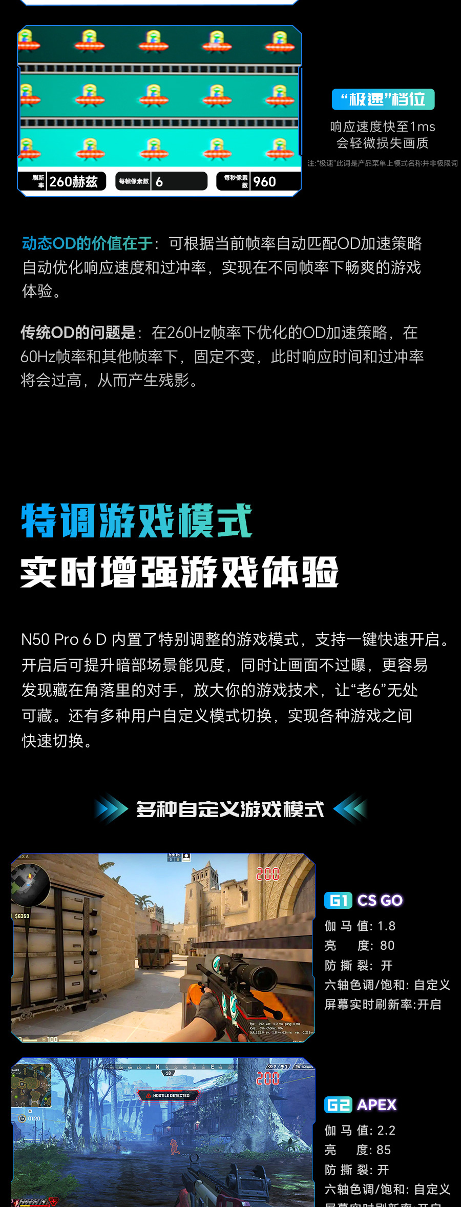 刷新率:超频260Hz (原生240Hz)