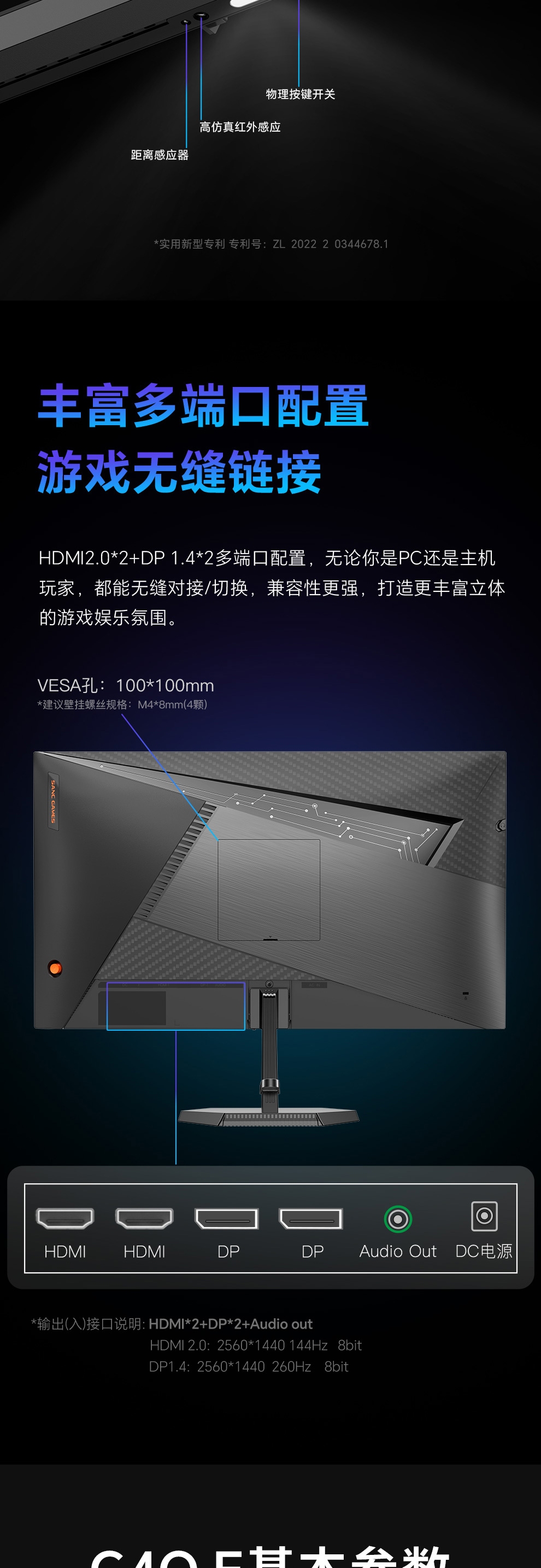 输出(入)接口说明: 2HDM+2DP+Audio out