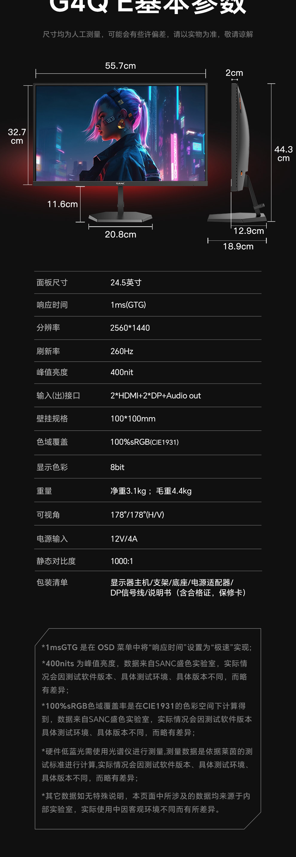 色域覆盖率:100%sRGB(CIE1931)