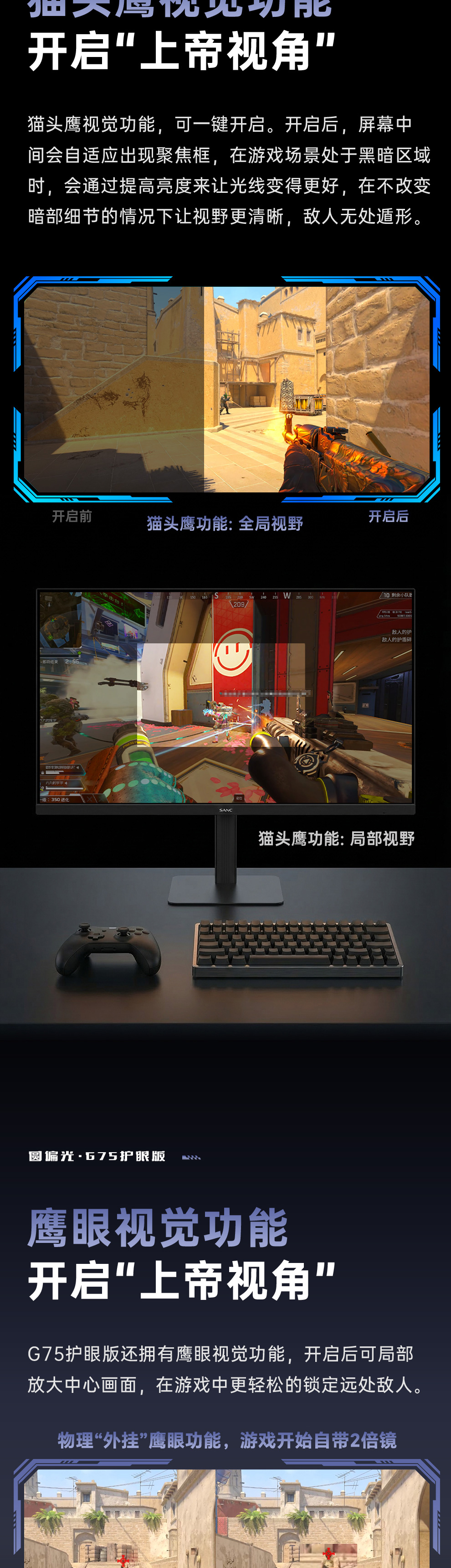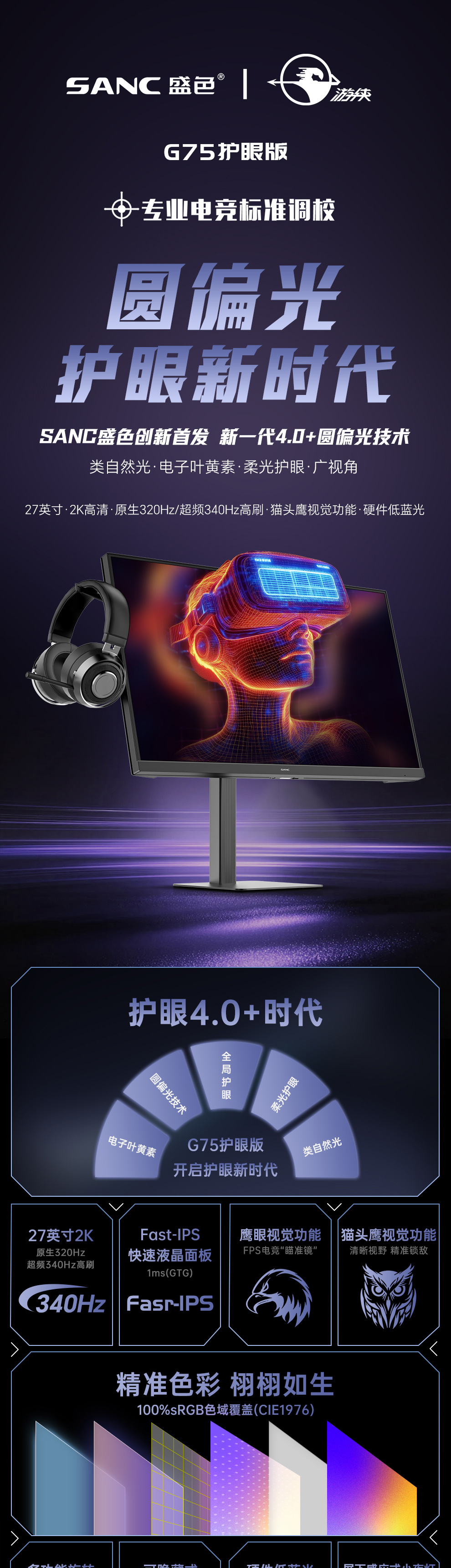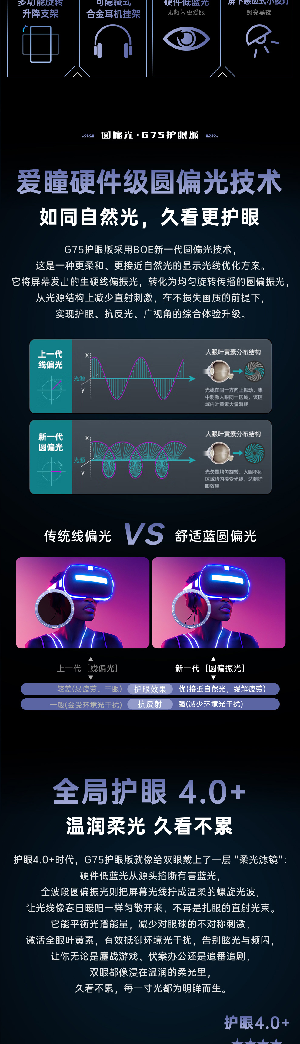 亮点功能:新一代圆偏光技术/猫头鹰视觉功能