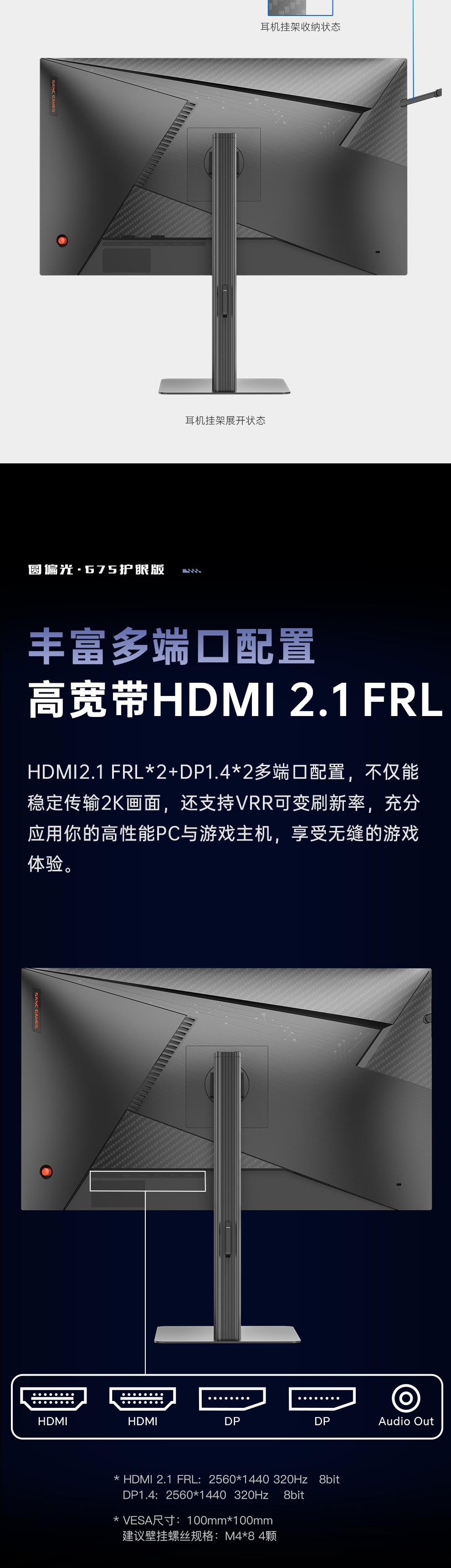 HDMI 2.1 FRL:  2560*1440 320Hz   8bit