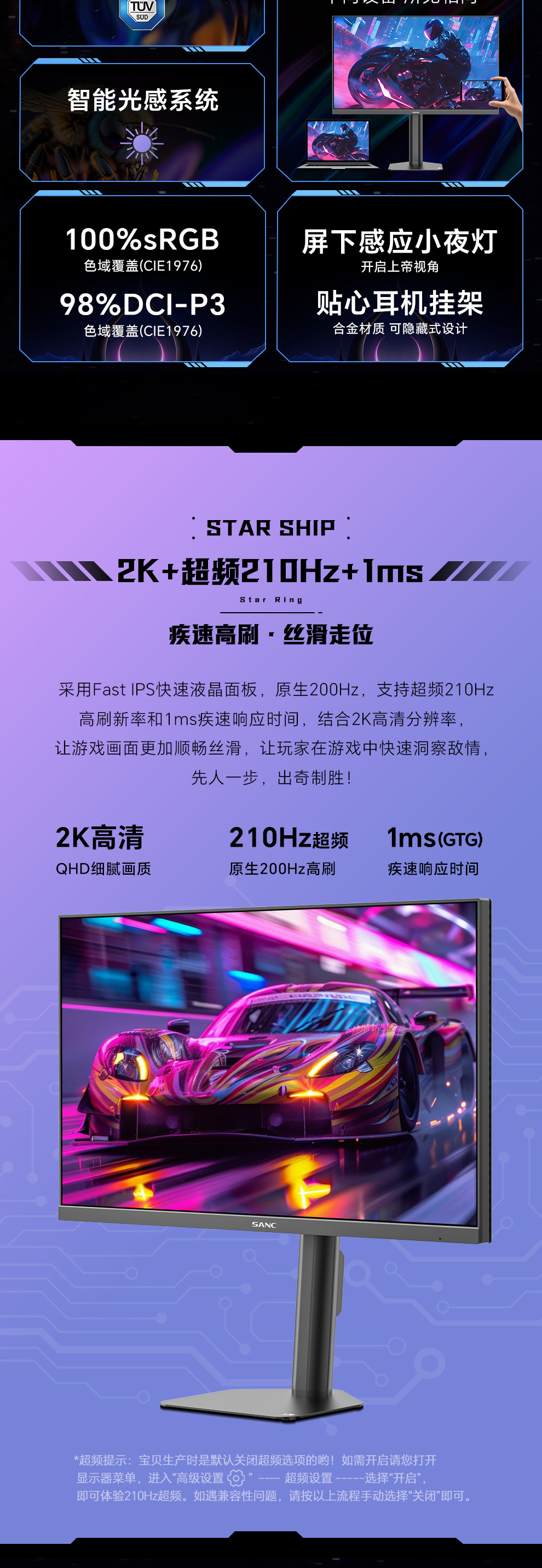 刷新率:210Hz(超频)