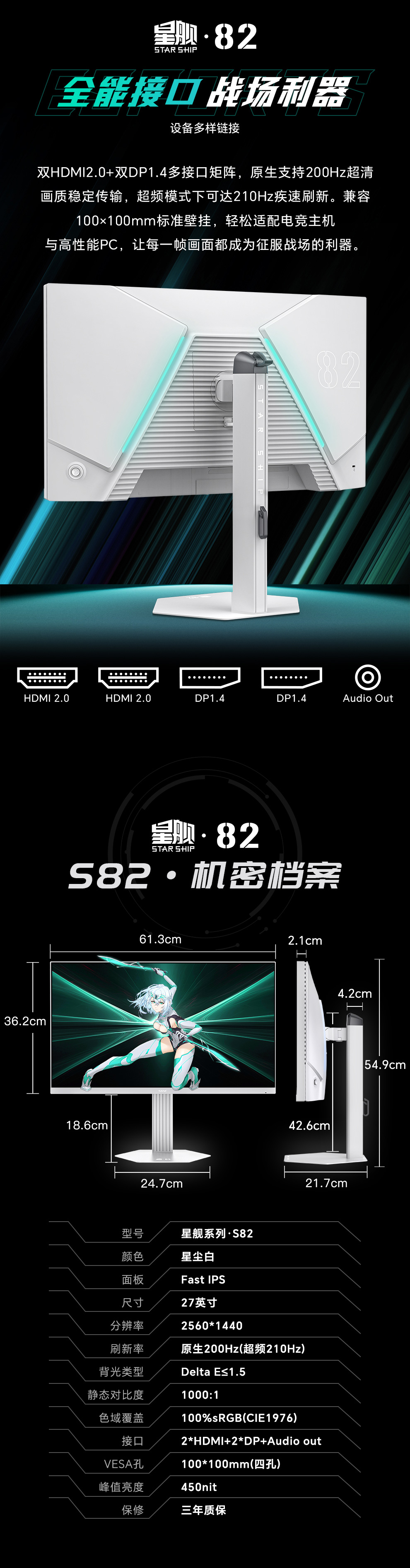 输出(入)接口说明: 2HDM+2DP+Audio out